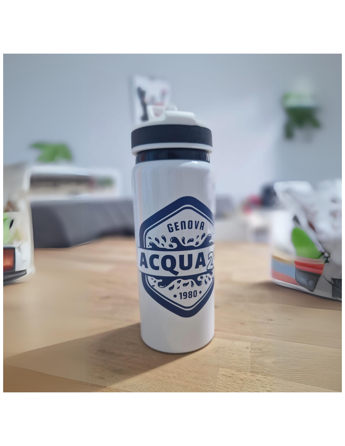 Capacità 680 ml. Coperchio con pratico beccuccio retrattile e manico per un facile trasporto.